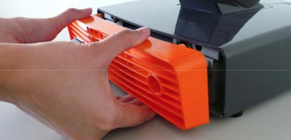 La face colorée déclipsée, vous avez donc accès directement au tiroir qui contient les organes principaux de la machine. Colormetrics a en effet voulu que l'on puisse accéder rapidement aux entrailles de la machine en cas de maintenance ou de réparation urgente.