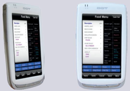 Le PDA tactile DOT H500 a été conçu pour la prise de commande en restaurant, et il a effectivement quelques solides arguments. Rappelons qu'en restaurant et restauration rapide, un PDA tactile doit pouvoir répondre à certaines contraintes : il doit être à la fois léger, l'utilisateur l'ayant souvent en mains, solide, le serveur circulant très rapidement entre les tables, et pouvant cogner ou faire tomber le PDA, bénéficier d'une bonne autonomie, ce serait catastrophique si le PDA s'éteignait en plein milieu du service, être très fiable, et enfin, avoir un écran toujours lisible, y compris sur une terrasse en plein soleil !