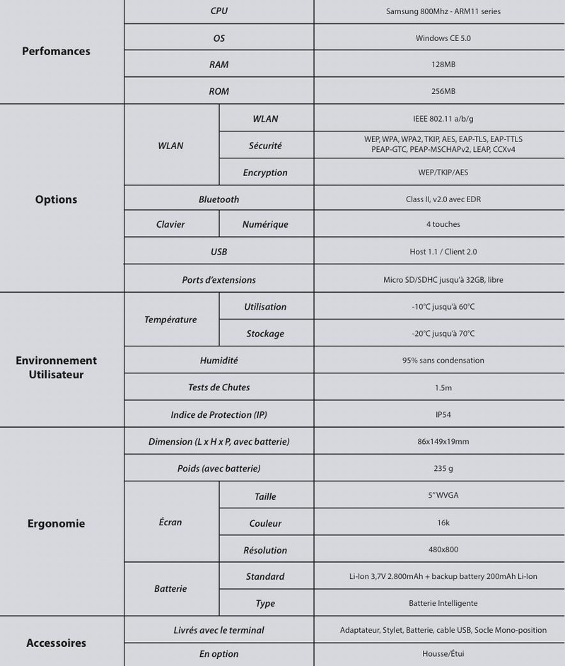 Mais ça ne s'arrête pas là, puisque ce PDA peut être utilisé sous des températures allant de - 10° à + 60°, ce qui est vraiment rare ! Et ne pensez pas que c'est totalement inutile, car les serveurs s'approchent parfois des fours de cuisson par exemple, et cela endommage de nombreux appareils qui ne sont pas conçus pour approcher des températures peu habituelles.